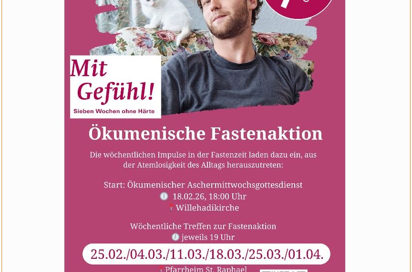 Die Fastenaktion steht in diesem Jahr unter dem Motto „Mit Gefühl! Sieben Wochen ohne Härte“. Für sieben Wochen treten wir bewusst aus der Praxis und den Bildern der Härte heraus. Auch dieses ...
