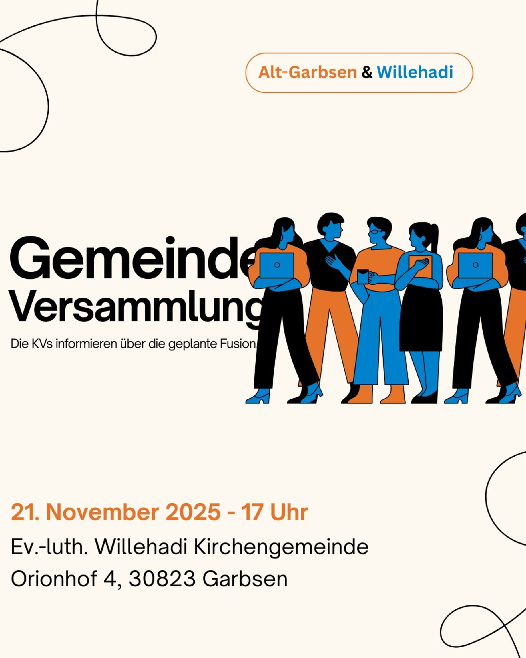 Es ist klar, dass Sie viele Fragen haben und noch haben werden – so geht es uns allen, die wir uns mit dieser Frage befassen. Die Kirchenvorstände aus Alt-Garbsen und Willehadi sind bereits in einem engen Austausch, haben sich besser kennengelernt und sind davon überzeugt, dass dies der Weg in eine gute gemeinsame Zukunft ist – eine Zukunft, die tragfähig ist, damit wir gemeinsam für all die Menschen hier in Garbsen Kirche sein können.