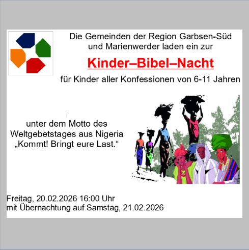Die Gemeinden der Region Garbsen-Süd und Marienwerder laden ein zur Kinder–Bibel–Nacht