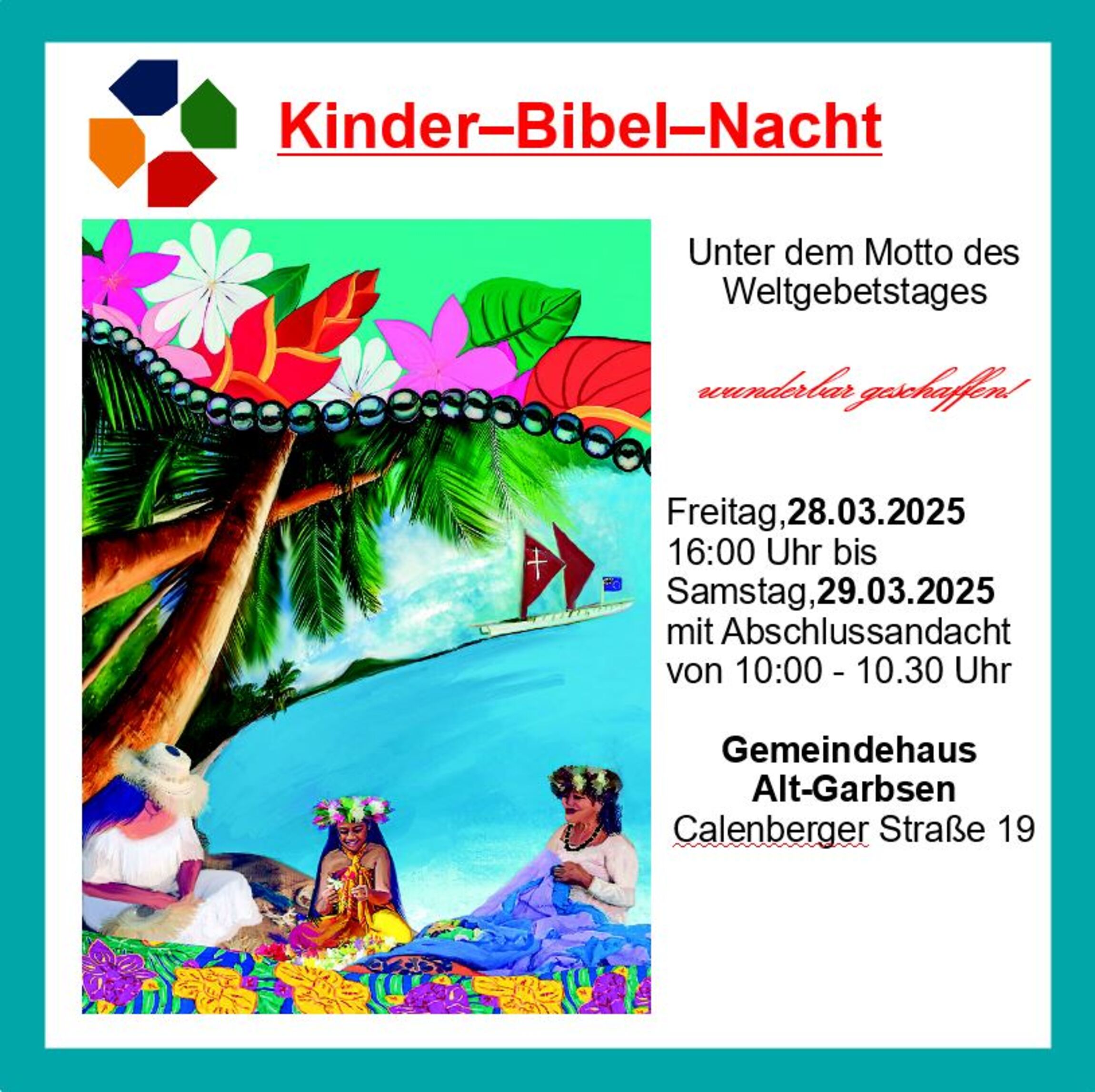 Die Gemeinden der Region Garbsen-Süd und Marienwerder laden ein zur Kinder–Bibel–Nacht