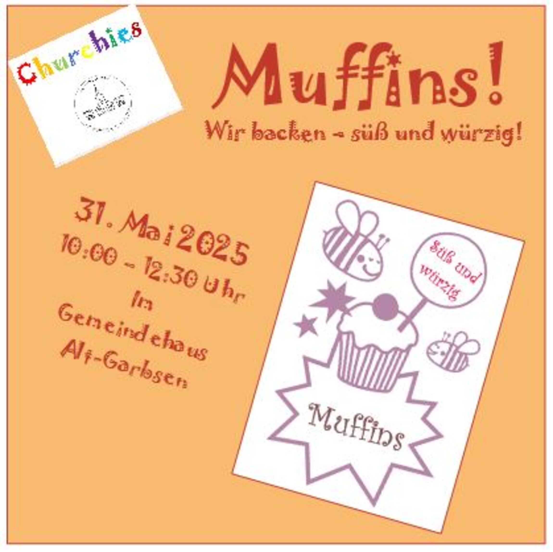 Muffins! - Wir backen - süß und würzig! Die Churchies backen am 31. Mai 2025 von 10:00 - 12:30 Uhr süße und salzige Muffins im Gemeindehaus Alt-Garbsen. Wir freuen uns auf Euch Astrid Peiser-Timm und Ben Niemeyer