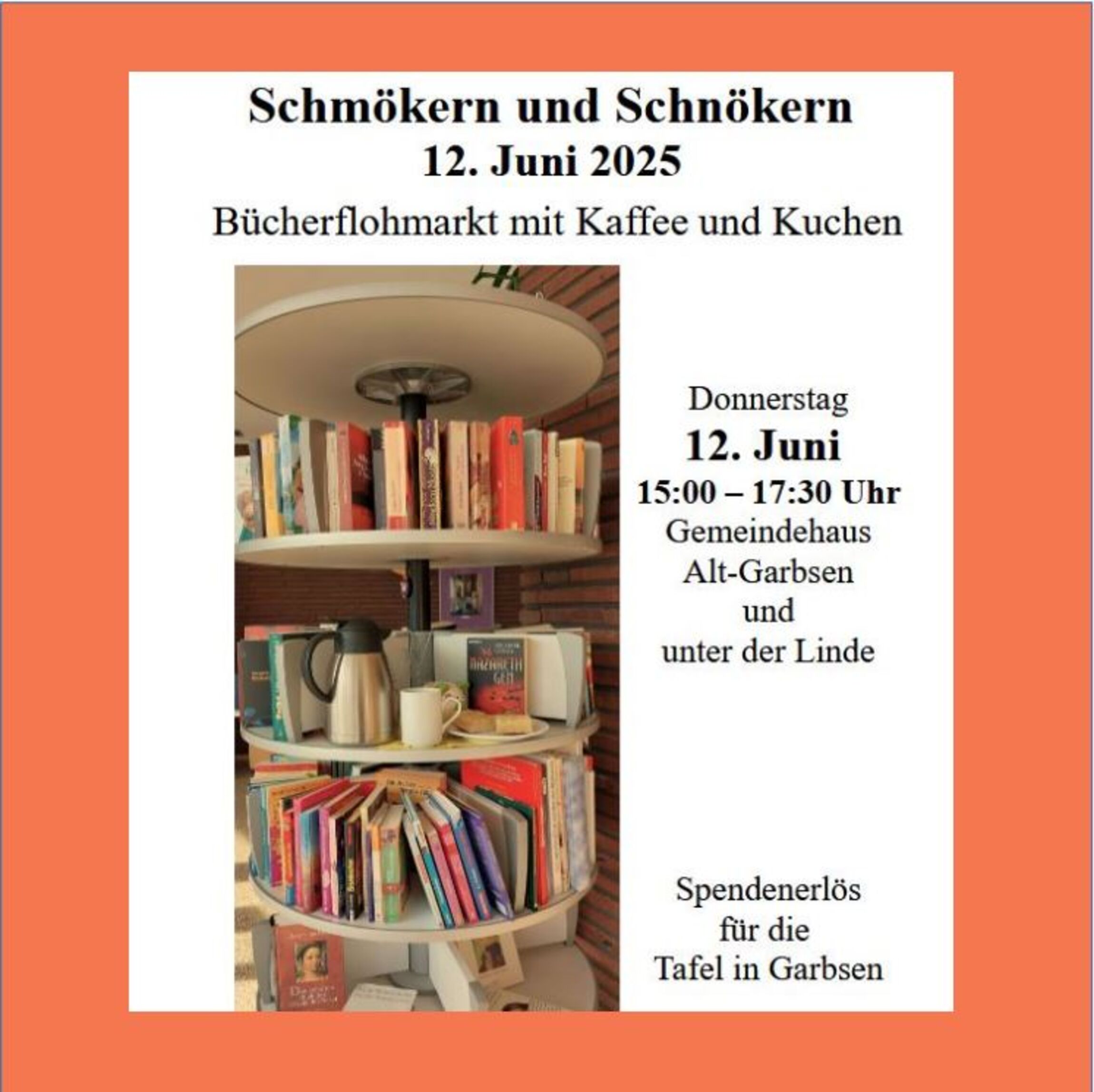 Bei gutem Wetter können Sie vor dem Alt-Garbser Gemeindehaus unter der Linde in unserem Fundus gespendeter Bücher stöbern und Lektüre für Urlaub, Entspannung oder zum Verschenken finden. Sollte es regnen, kommen Sie bitte ins Gemeindehaus, dort gibt es auch Kaffee und Kuchen, um gestärkt in eins der neuen Bücher zu schauen oder sich zu unterhalten.