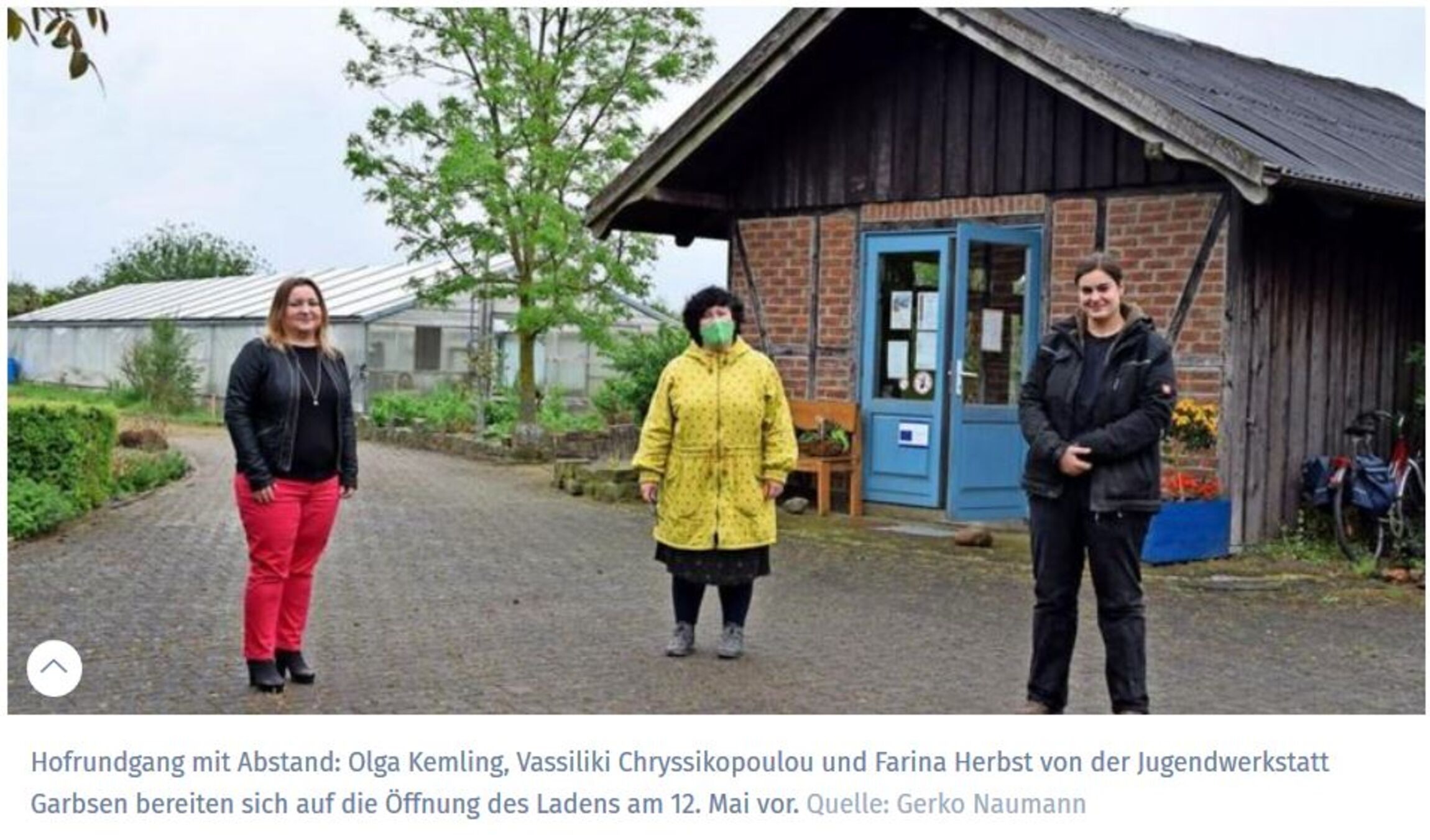 Ab Dienstag den 18. Mai 10:00 Uhr ist außerdem der Hofladen der (Jugend-) Werkstatt gGmbH wieder geöffnet .