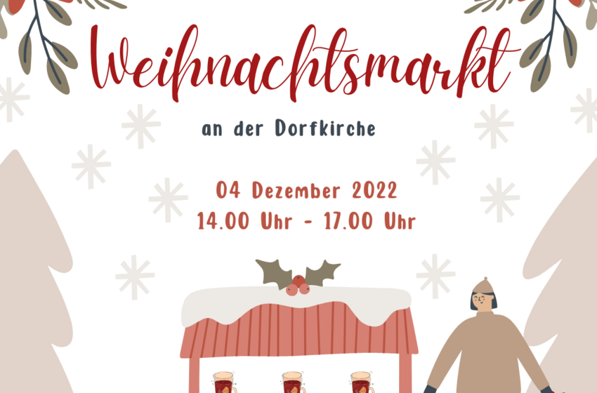 Weihnachtsmarkt am 4.12.22 von 14.-17.00 Uhr an der Dorfkirche