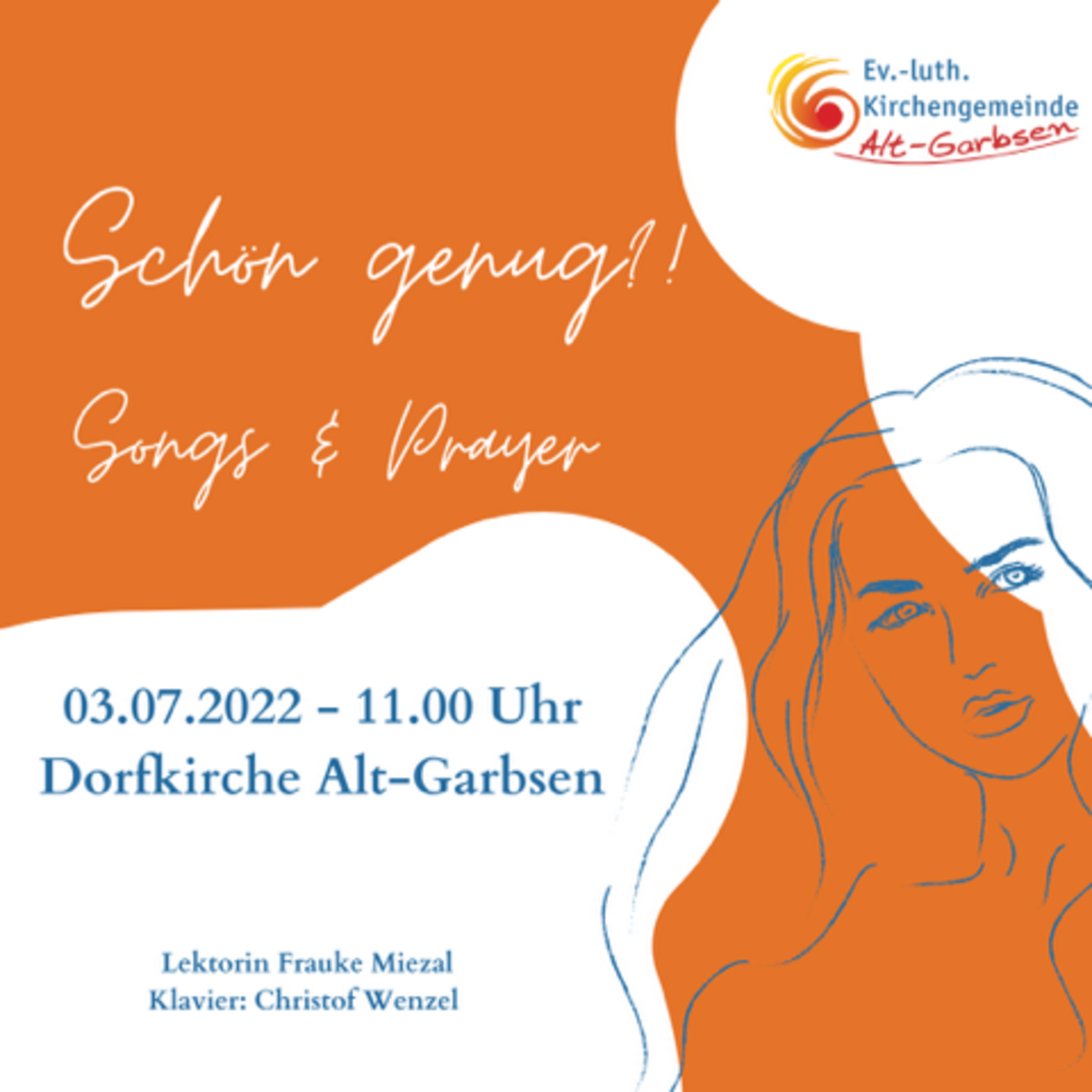 Im zweimonatigen Rhythmus feiern wir mit Lektorin Frauke Miezal einen Gottesdienst in der neuen Gottesdienstreihe "Songs & Prayer" in Alt-Garbsen. Es dreht sich alles um das jeweilige Lied des Gottesdienstes (Song) und die anschließenden Gedanken und Impulse (die sog. Prayer) dazu.