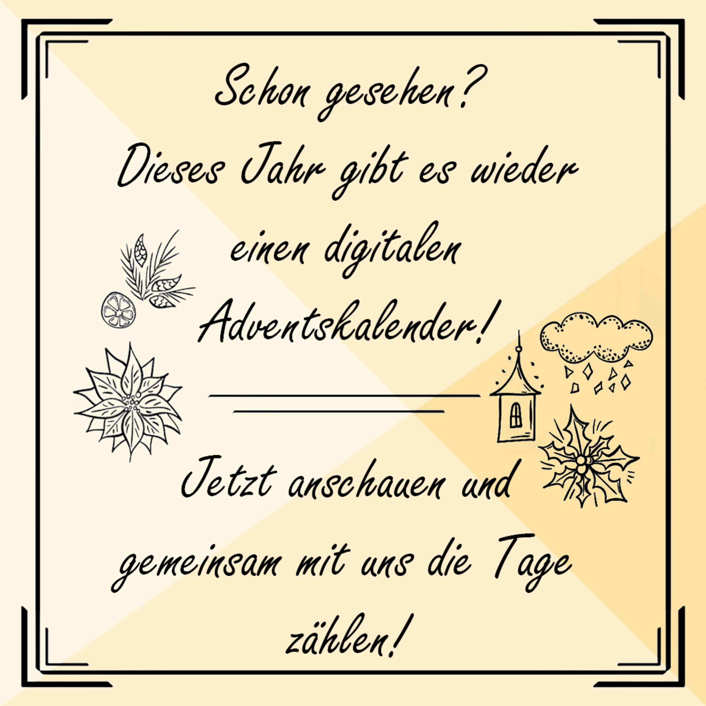 Freut euch darauf, gemeinsam mit uns täglich eine neue Überraschung zu lüften und mit vielen schönen Bastel- & Backanleitungen sowieso spannenden Infos die Zeit bis Weihnachten zu süßen!
