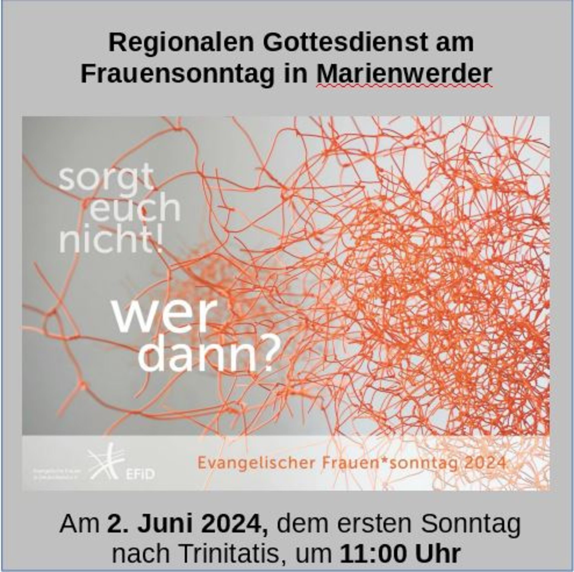 Am 2. Juni 2024, dem ersten Sonntag nach Trinitatis, um 11:00 Uhr feiern wir den regionalen Gottesdienst am Frauensonntag in Marienwerder.