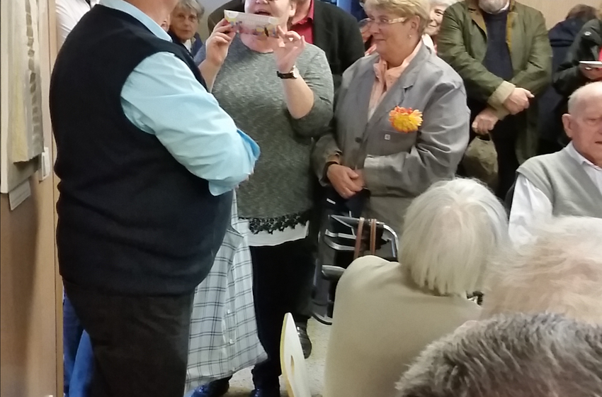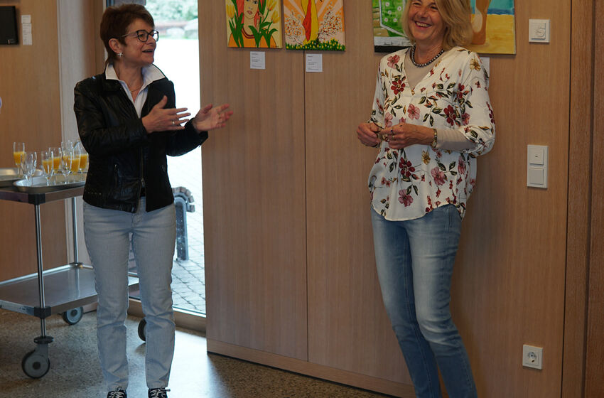 Gerade schien doch noch die Sonne! Egal: Martina Heger und Cornelia Breuker eröffneten die Ausstellung im Gemeindehaus. An die 76 Personen konnten sich in den 1,5 Stunden die Bilder anschauen, ...