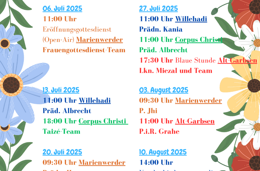 Spannende Gottesdienste zur Jahreslosung Es wird langsam sommerlich. Ein untrügliches Zeichen dafür, dass die Sommerkirche auch nicht mehr allzu fern ist. Auch dieses Jahr freuen wir uns auf ...