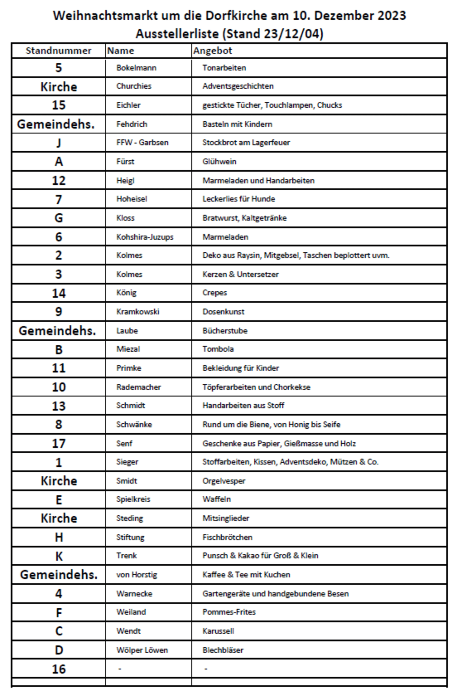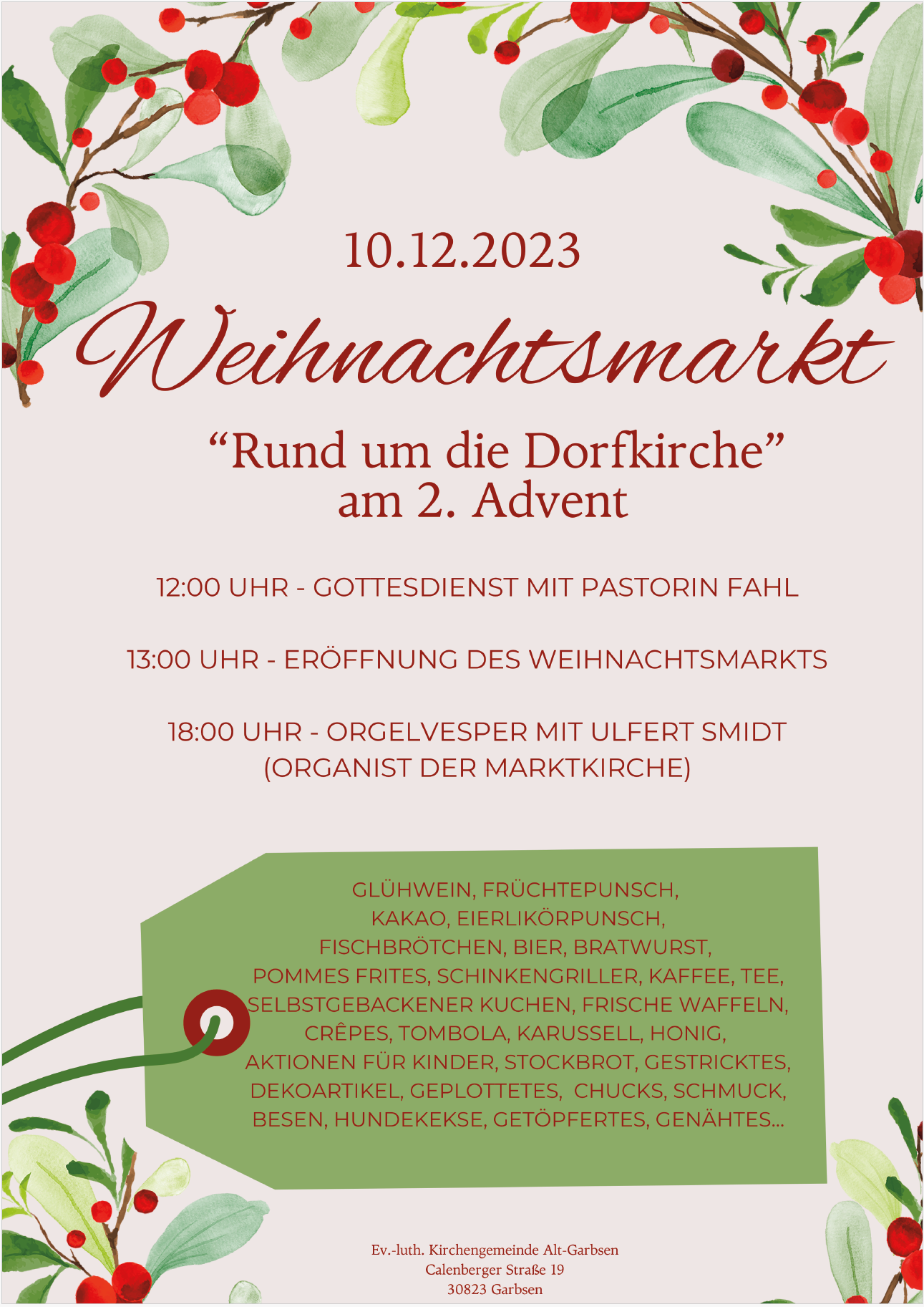 Wir sind unterwegs, der Weihnachtsmarkt "Rund um die Dorfkirche" soll wieder am 2. Advent (10.12.2023) stattfinden.