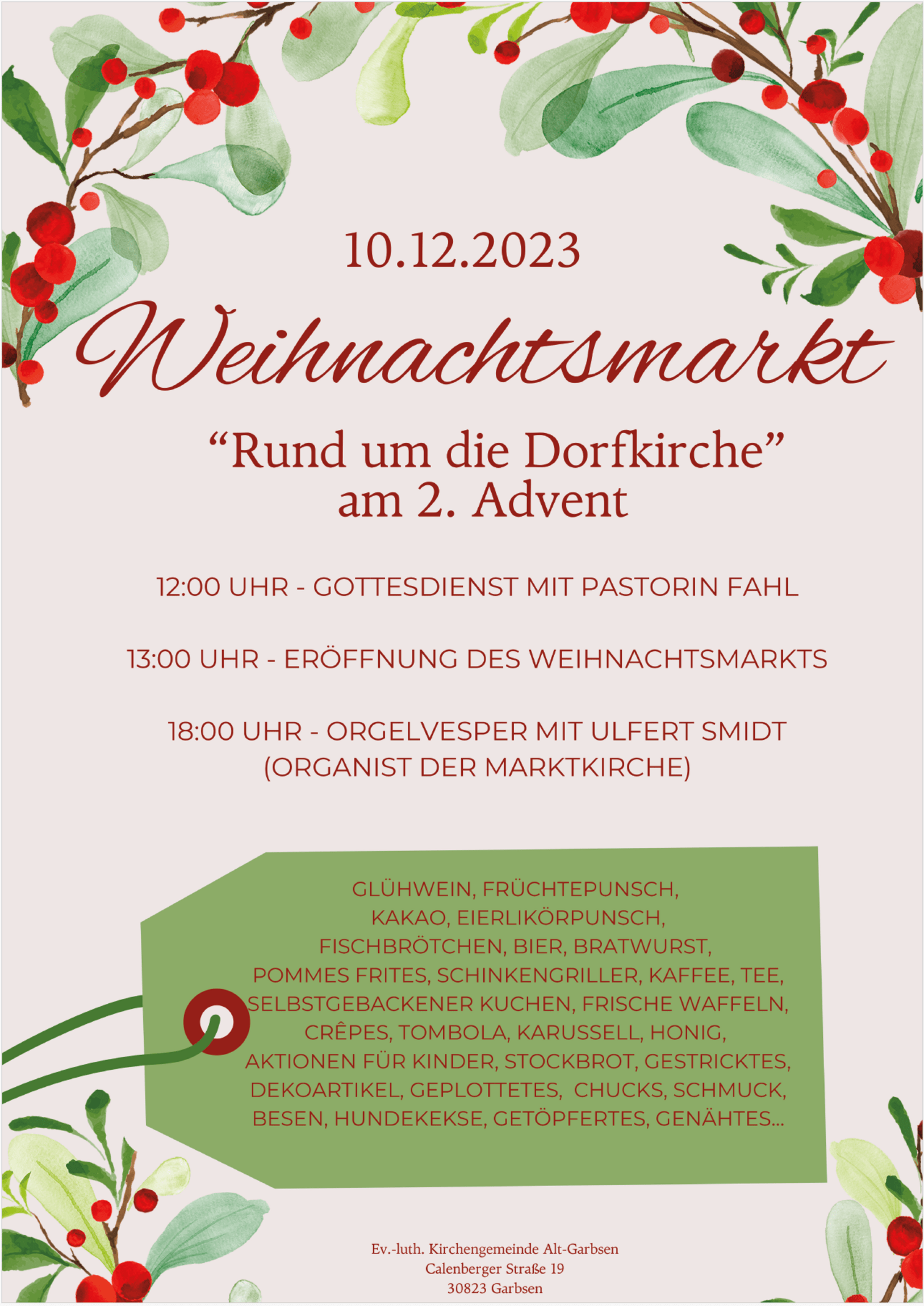 Wer dabei sein möchte (ganz gleich auf welcher Seite des Tresens) melde sich gerne unter weihnachtsmarkt@alt-garbsen.de, oder auch im Büro.