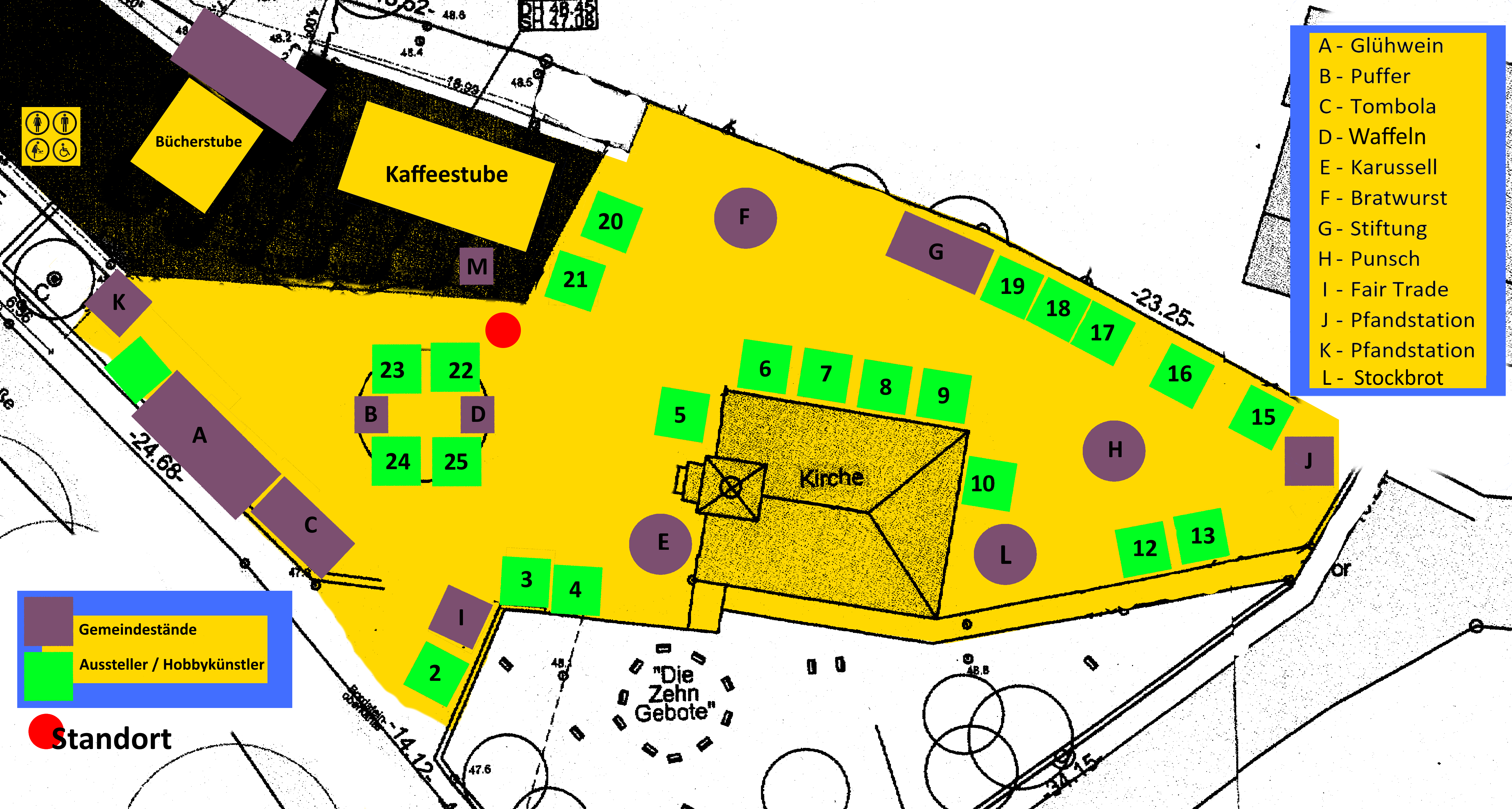 Glühwein, Punsch, Kakao, Waffeln, Bratwürste, Kuchen und alle sonstigen Lebensmittel für den direkten Verzehr auf dem Weihnachtsmarkt werden ausschließlich durch Gemeindegruppen angeboten.