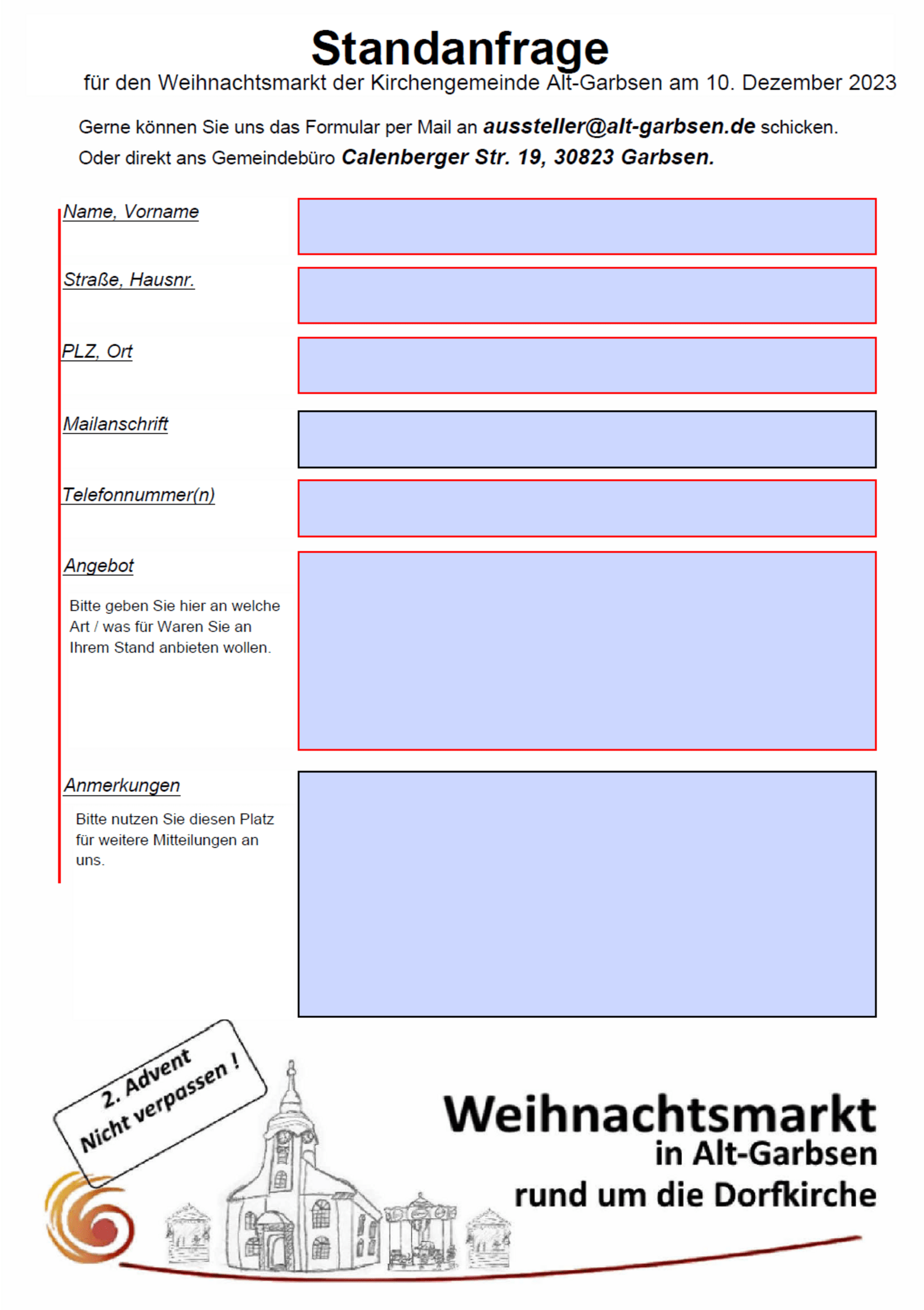 Auf der rechten Seite sehen Sie unser Anmeldeformular für den Weihnachtsmarkt 2023.